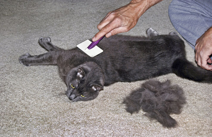 Во время появления питомца в доме, каждый хозяин задумывается как уменьшить количество шерсти в квартире. У любой кошки в весенний и осенний период начинается линька, которая проходит за несколько месяцев. В случаях когда, линька продолжается больше трех месяцев, то следует обратиться к доктору за консультацией, поскольку причиной может послужить какая-либо болезнь. Уход и купание Купание каждый месяц, может способствовать избавлению от линьки, поскольку это поможет в обновление шерсти. После купания тщательно высушите питомца и не дайте ему замерзнуть. Кроме купания, в данный период рекомендуется несколько раз в месяц вычесывать шерсть кота. Когда в доме очень жарко, можно не купать, а просто обтереть любимца влажными руками, таким образом вы уберете лишнюю шерсть, при этом не раздражая кожу. Чрезмерное расчесывание ведет к увеличению выпадения шерсти. Стрижка Некоторые считают, что лучшим выходом является подстричь своего кота, однако это процедуру следует выполнять очень внимател