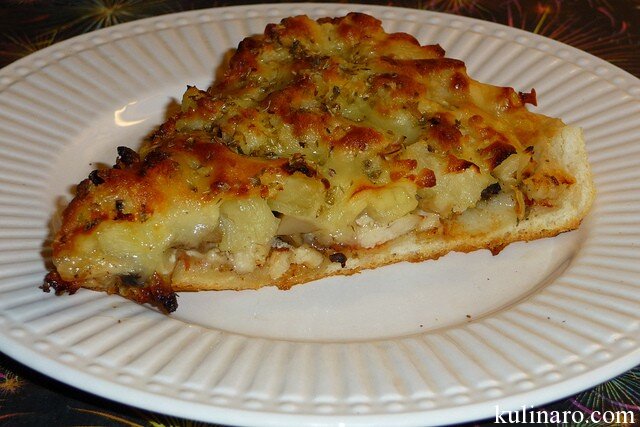 Пицца известное навесь мир традиционное блюдо итальянской кухни. Популярность пиццы в нашей стране огромна, ведь используя всего два компонента – мягкую лепешку из дрожжевого теста и начинку – можно создавать кулинарные шедевры. Попробуйте приготовить пиццу, используя необычное сочетание продуктов – ананас и курицу. Вкус получается необычный и очень нежный. Необходимые продукты для приготовления пиццы с курицей и ананасами: Мука – 200 гр.