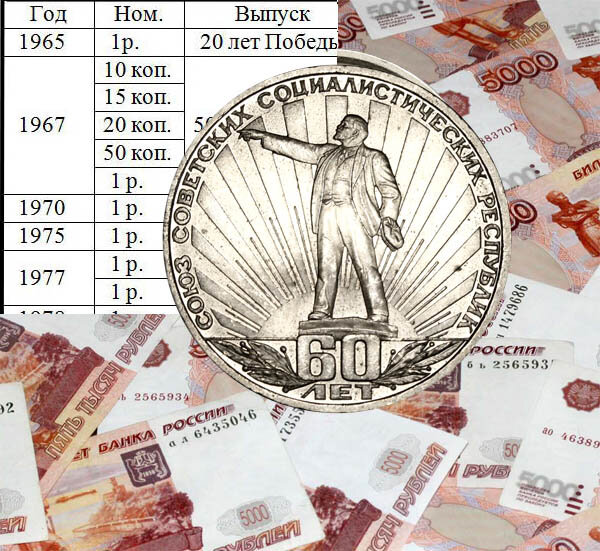 ЦЕННИК на юбилейные и памятные монеты СССР для обращения 1965 – 1991 годов.