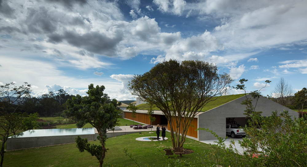 Традиционный архетип сельского дома или фермы делает новый дом Марсио Когана естественным в сельской местности, а знакомые минималистские черты и большая открытость — узнаваемой работой известного бразильского архитектора. Дом одноэтажный, в плане представляет из себя вытянутый прямоугольник, рассечённый перпендикулярной открытой зоной с выходящими в обе стороны террасами и бассейном. Торцевые фасады бетонные, боковые закрываются деревянными раздвижными экранами. Двухскатная кровля покрыта зелёным газоном. Всего в доме 9 спален, 10 ванных комнат, 3 гостиных, 2 кухни и открытая терраса с бассейном. Название: Дом ММ (MM House)