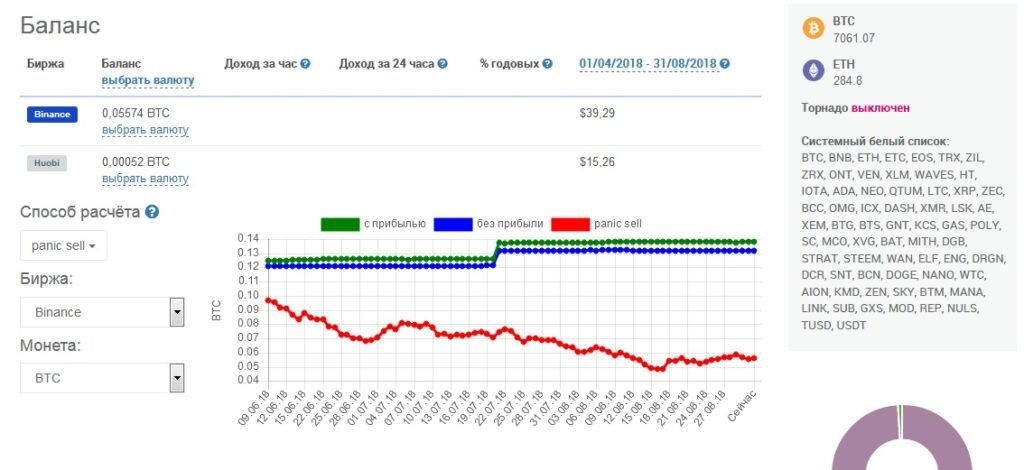 Всем привет! Вот и кончилось лето! А значит нужно подбить итог за прошедший месяц. Итого на 1е августа на бирже Бинанс: 12 748 240 сатошей. За месяц ничего не изменилось. Сделок не было. Реальный баланс немного снизился. Выводов с аккаунта Апитрейда я не делал. Выводов с биржи тоже не делал. Ждем осеннее ралли по биткоину и альткоинам )))) Разработчики тестируют новшества в алгоритме «волны» — теперь бот будет усредняться на уровнях поддержки. От этих уровней цена часто отскакивает вверх, а это нам и нужно. Вот только у меня основной баланс завис во всяких «щиткоинах» (((( И я не могу протестировать эти последние новшества. Ну ничего — подождём! ))) Баланс на 1е сентября на бирже Бинанс должен быть: 12 748 240 сатошей. Оставайтесь на связи! Всем всяческих благ!