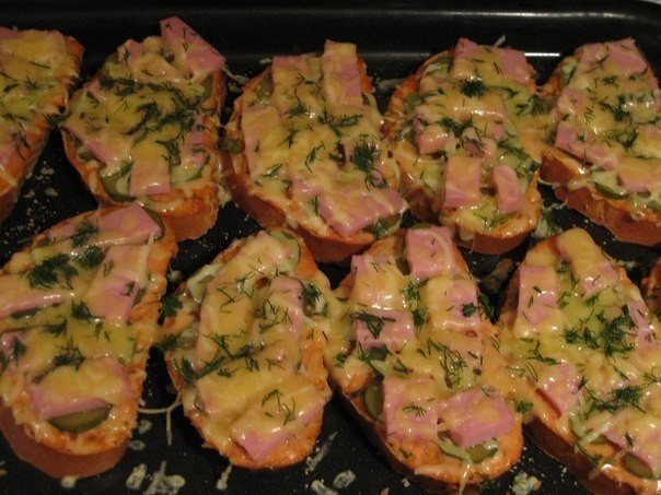 Привет друзья! Хочу поделиться простым рецептом быстрых бутербродов, которые по вкусу не уступают пиццы. Кушать горячими! Зелень сверху можно заменить ОРЕГАНО (вкус получится как в пиццерии). А если добавите помидорку с базеликом, получится вообще - пальчики оближешь! Но я не буду усложнять рецепт, а покажу наиболее простой способ. А уже дальше, вы сможете фантазировать... Главное, что всё очень просто и не нужно готовить тесто. Нам понадобятся: Батон нарезаем, или приобретаем уже готовый нарезанный. Кетчуп необходимо смешать с майонезом один к одному. Огурцы нарезаем кружочками, колбасу или режем мелкими кубиками, или натираем на терке. Так же на терке натираем сыр. Укроп мелко шинкуем. Ломтики батона смазываем смесью кетчупа с майонезом, сверху кладем огурцы, колбасу и посыпаем сыром и укропом. Раскладываем на противень и выпекаем минут пять, пока сыр не расплавится. Просто не так ли? А главное - быстро и вкусно. Быстрый перекус готов! Понравилось?