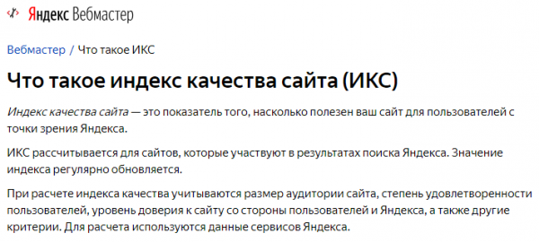 Ссылка для проверки индекса качества сайта ИКС : https://webmaster.yandex.ru/sqi/?host=