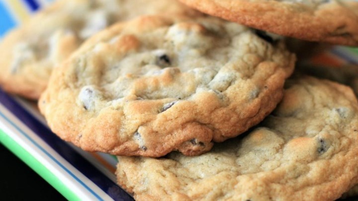Хрустящая корочка, мягкая середина. 24 порции Ингредиенты: 1 стакан масла, подтаявшего 1 стакан белого сахара 1 стакан коричневого сахара 2 яйца 2 ч. л. ванильного экстракта (см. примечание в конце) 1 ч. л. пищевой соды 2 ч. л. горячей воды 1/2 ч. л. соли 3 стакана муки 2 стакана шоколадной стружки 1 стакан нарезанных грецких орехов Приготовление: Разогрейте духовку до 175 градусов C. Перемешайте сливочное масло, белый сахар и коричневый сахар до однородной массы. Вмешайте яйца по одному, затем добавьте ваниль и хорошо перемешайте. Растворите пищевую соду в горячей воде, добавьте в тесто и посолите. Вмешайте муку, шоколадную стружку и орехи. Большой ложкой выложите тесто на несмазанный противень. Выпекайте около 10 минут в разогретой духовке или до тех пор, пока края не будут хорошо подрумянены. Примечание: Можно заменить один ванильный продукт другим. Пропорции примерно следующие: 1 ч. л. экстракта ванили = 10-15 г ванильного сахара = 1/2 г ванилина = стручок ванили длиной 5 см