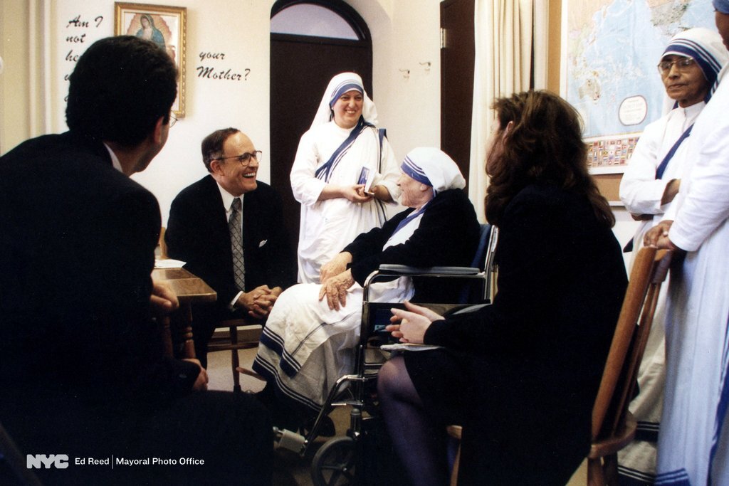 Чуть больше 20 лет назад, в июне 1997 года, в офис мэра Нью Йорка пожаловал довольно необычный гость. Всемирно известная католическая монахиня, Мать Тереза пришла на встречу с тогдашним мэром города, Рудольфом Джулиани. Вернее её туда прикатили, она была уже не в лучшем здоровье.
