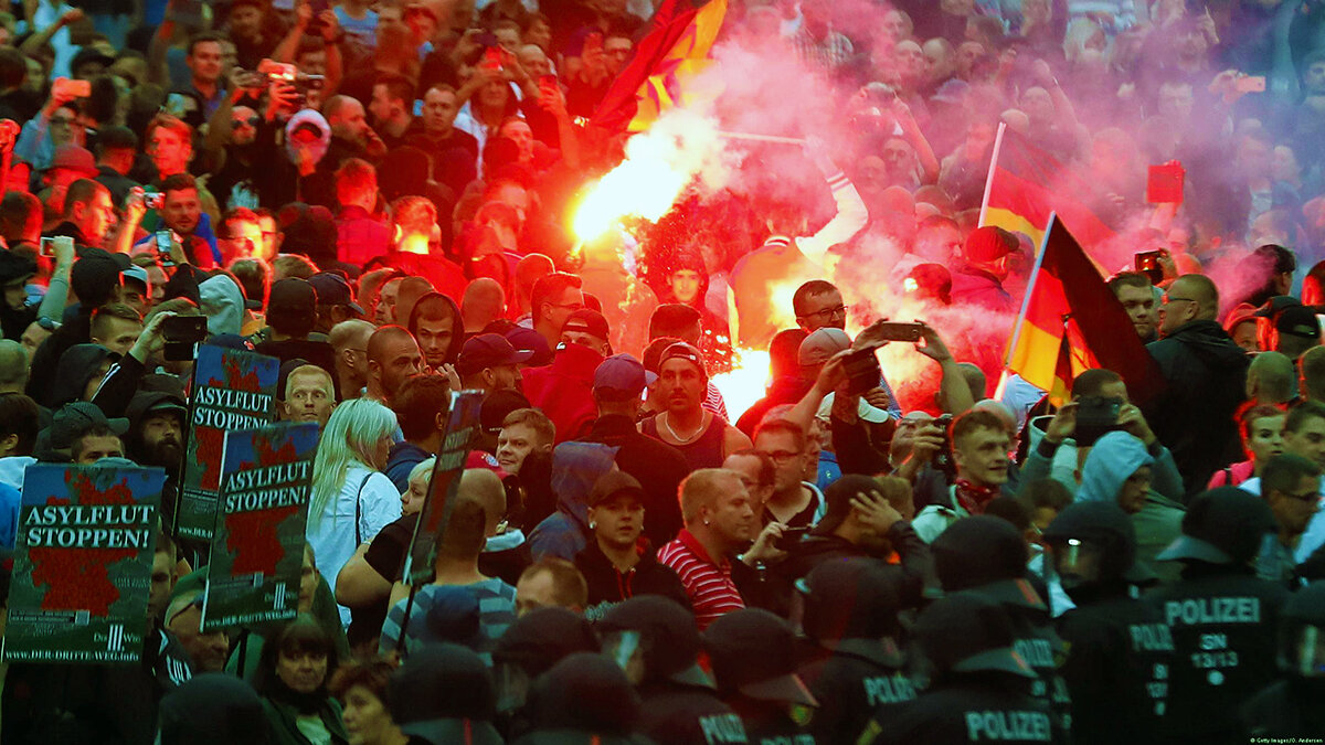 Правоохранители города Хемниц, что находится в Германии, информируют, что в городе прошли акции в поддержку и против мигрантов. В ходе них между демонстрантами произошла стычка, правоохранителями было задержано более трехсот человек, и несколько десятков человек пострадали. Немецкие праворадикалы организовали марш, тем самым выражая протест относительно размещения мигрантов в своей стране. В то же время, другая часть населения организовала митинг под названием «Сердце вместо ненависти» и обратилась с призывом быть более толерантными. Полиция сообщает, что всего в акциях приняли участие почти десять тысяч человек, в то время как правоохранителей было не больше двух тысяч. Отметим, что ранее в городе убили гражданина Германии, который имел кубинское происхождение. Один из работников юстиции сделал несколько фотографий ордера на арест подозреваемых в убийстве. Благодаря фотографиям люди узнали, что подозреваемые являются гражданами Ирака и Сирии. Эти снимки мужчина передал друзьям уби