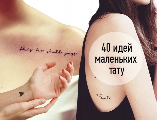 Сегодня говорим о татуировках! Недавно мы писали о том, что нужно знать прежде, чем сделать татуировку. Мы решили двигаться дальше и подобрали для вас идеи маленьких татуировок. Ниже – подборка 40 маленьких тату, которые помогут вам найти вдохновение. Они – идеальный вариант для девушки. Возможно, среди этих "малышек" найдется "та самая", ваша татуировка. Смотрим! Татуировка – серьезный и ответственный шаг Ведь нам важно, чтобы тату было отображением нас самих и подчеркивало нашу индивидуальность. Ведь даже простое, на первый взгляд, изображение может нести очень глубокий смысл. В Поэтому советуем присмотреться к идеям маленьких татуировок. Они не привлекает лишнего внимания, но прекрасно подчеркивают вашу индивидуальность. [attention type=green]Мы, конечно, не призываем вас делать тату, но если вы держите в голове какую-то идею, и не знаете, как ее воплотить в жизнь, возможно, именно наша подборка поможет вам определиться с тем, как будет выглядеть ваша татуировка в будущем.[/attent