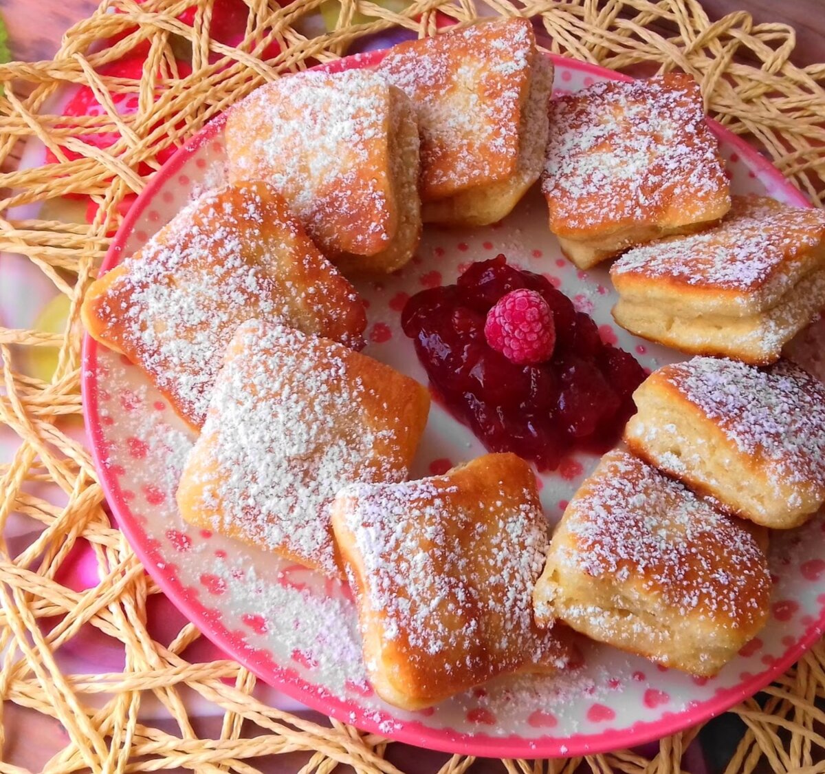 Нам понадобится: Мука пшеничная - 2 стакана Кефир - 1/2 стакана Сахар - 2,5 ст л Ванильный сахар - 1 пакетик Яйцо - 1 шт Сода пищевая - 1/2 ч л Соль - 1/4 ч л Масло растительное - 1 ст л + для жарки Начинаем готовить: Просейте муку через сито и смешайте с ванильным сахаром. Смешайте кефир с содой и оставьте на 10 минут. Взбейте яйцо с солью и сахаром в миске, с помощью миксера. Добавьте ложку растительного масла и кефир с содой. Аккуратно перемешайте. Затем, не переставая перемешивать, постепенно добавьте муку с ванильным сахаром. Тесто должно получиться однородным и не должно прилипать к рукам. Поместите тесто на разделочную доску и сформируйте лист толщиной 1,5-2 см. Вырежьте прямоугольники. Разогрейте масло на сковороде. Обжарьте блинчики с двух сторон, до золотистой корочки. Промокните бумажным полотенцем для удаления лишнего жира. Перед подачей посыпьте сахарной пудрой. Если Вам понравился рецепт и Вас не затруднит, поставьте пожалуйста "палец вверх", поделитесь в социальных сетях