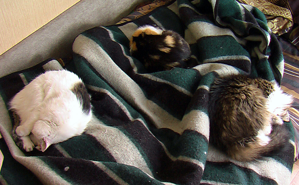 Коты (когда не спят клубами по диванам) ходят гулять на лоджию. Судя по тому, что забытые солонухи в ведерке превратились в булыжник, погоды там тоже прохладные, и коты, быстро намерзнувшись, ломятся в форточку Домой Греться. А через пять минут снова рвутся Гулять. Из открытой форточки на меня и интернет дует, я ее закрываю. Коты немедленно понимают, что они Отрезаны От Мира и устраивают Скандал с повисаниями и скрежетом лап по стеклу - дивный звук. Приходится поднимать окорочка и восстанавливать Кошачий Душевный Комфорт.