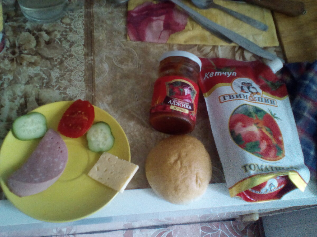 Всем привет сегодня я решил приготовить бюджетный бургер с колбасой за копейки. Нам понадобятся следующие ингредиенты. Огурец - 2 дольки. Помидор - 1 долька. Аджика жгучая обзор на неё тут. Кетчуп шашлычный обзор на него тут Булочка 1 шт. Колбаса 1 долька Сыр 1 ломтик Приступим. Для начала смазываю булочку аджикой. Далее кетчуп. И укладываем колбасу сыр огурец и помидор.(колбасу я обжарил) Все готово всем приятного аппетита. Подписывайтесь и получайте ещё больше интересных рецептов. Смотрите далее... Пирожное "картошка" со сгущёнкой (готовим дома за 5 минту) Салат - заправка. Фото рецепт. Вкуснятинка ! Лучшая тушеная фасоль с помидорами. (фото рецепт) Вкуснятина !