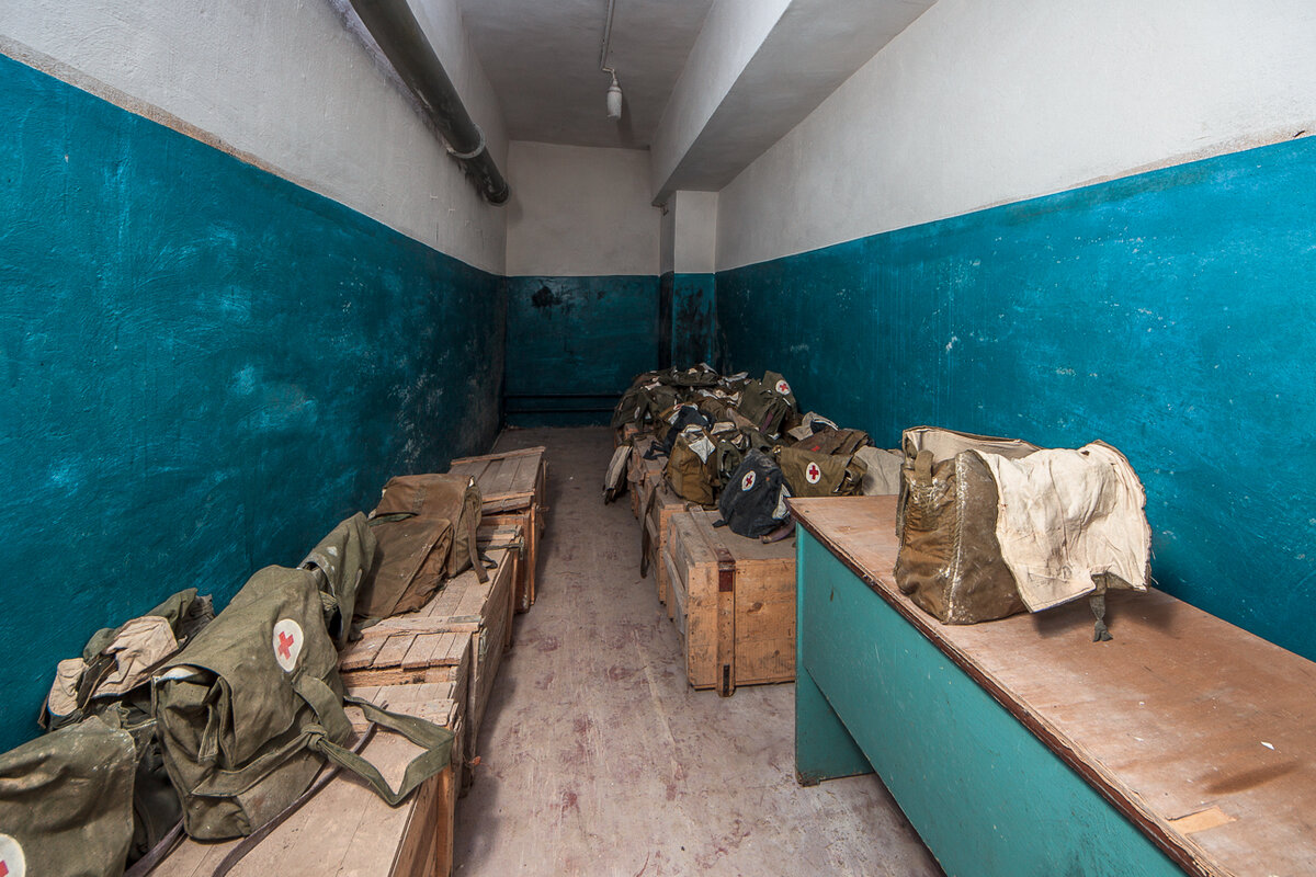 Главной особенностью данного защитного сооружения стал огромный склад медицинских сумок. Все эти сумки - наследие советского союза и не обновлялись они уже очень и очень давно.
