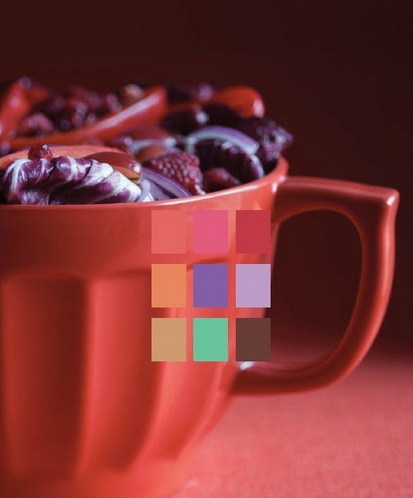 Тени в Страсти уговаривают глаз так же, как бутоны вкуса с пряными красными цветами, сладостным померанцем цвета фламинго и богатыми пурпурами. Аллюзии к фетишу еды: здесь перцы и шоколад, капучино и травянистая зелёная тень. Берите яркую красную мебель: это стильно.