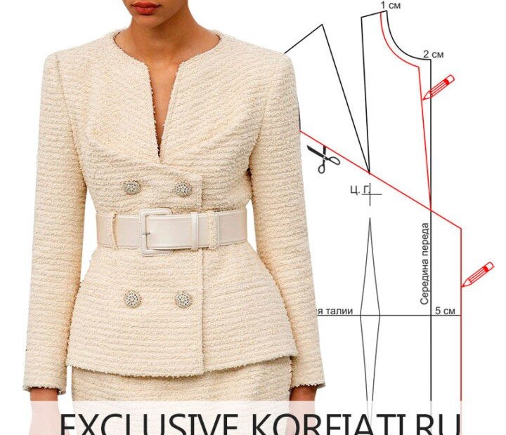 Наш очередной урок по моделированию мы решили посвятить жакету. Этот роскошный жакет без воротника из коллекции в первую очередь привлекает внимание конструкцией лифа — нестандартные складки-вытачки и ломаная линия борта превращают классический жакет, который нам всем хорошо знаком, в настоящий шедевр. В этом уроке мы подробно рассмотрим моделирование полочки изделия, изготовим макет жакета и наглядно продемонстрируем, как будет выглядеть готовая конструкция на манекене. Моделируем жакет Chanel со складкой-вытачкой к пройме