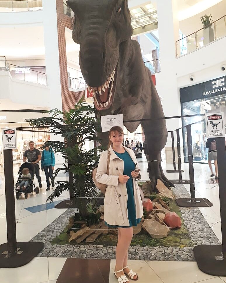 О, времена! О, ход и течение жизни. Несколько миллионов лет назад 🔙 я неслась бы сломя голову от такого чудовища! А тут… Стою и улыбаюсь. Потому что понимаю, что монстр 👾 ненастоящий. Конечно, если представить, что такие ходили бы по улицам… Это отличная картина, отражающая работу со страхами 😰 Рациональный страх говорит нам "беги" от опасности. И мы его слушаем. Но если бы я обладала иррациональным страхом гипсово-пластиковых скульптур, то неслась бы из торгового центра, как миллионы лет назад 🔙 бегали древние люди. Не смотря на комичность образа, хочу сказать, что многие живут с огромным количеством иррациональных страхов в голове: страх выступлений, одиночества, страх быть отвергнутым или забытым, страх путешествий и самопроявления. Эти страхи, увы, не защищают нас, а порабощают. Мы все в глубине души и сердца 💞 желаем освободиться от этих оков и вздохнуть полной грудью, насладиться жизнью во всей ее безудержной красе и разнообразии. Что делать с этим наваждением? Работать