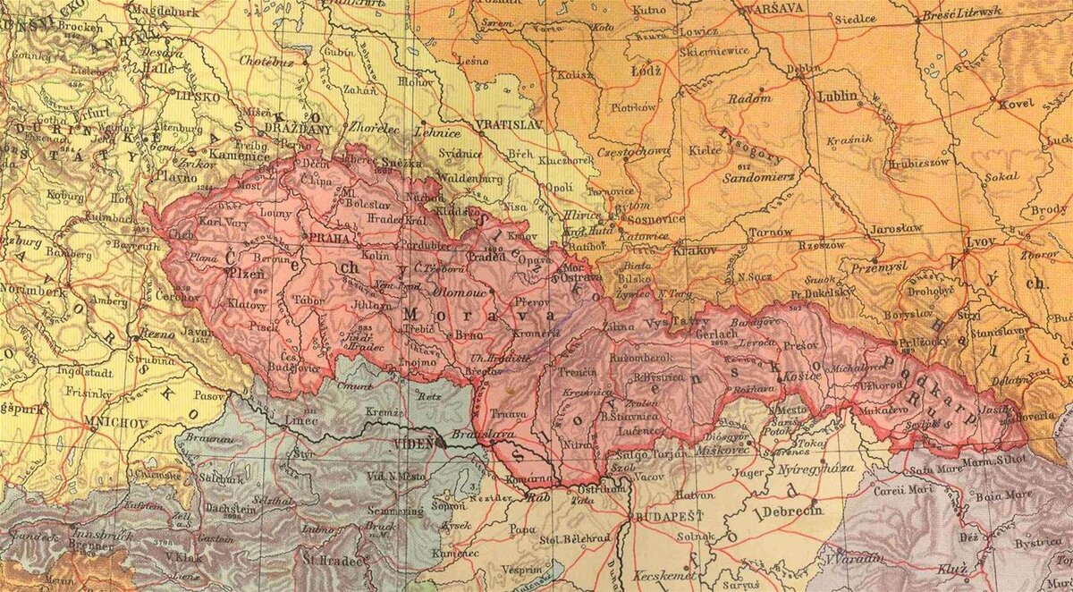 Молодежь наверно уж и не помнит, что было государство под названием Чехословакия. Для советского человека это слово было синонимом благополучия, качества и культуры производства. Но мы поговорим о той Чехословакии, которую вряд ли кто застал из читателей этого канала – о Чехословакии межвоенной. Это было очень интересное государство, гораздо более симпатичное, чем другие возникшие после Первой мировой державы Восточной Европы. Природные красоты, восхитительные города, образованное население, мощная промышленность – все это было у молодой страны с самого начала. Но была и одна большая проблема, которая в конце концов сгубила эту страну: неурегулированные межэтнические противоречия. Взглянем сначала на межвоенную карту Чехословацкой Республики. Удивительные очертания, кажется в Европе ни до, ни после не было такой вытянутой с запада на восток страны: Отцы-основатели Чехословакии строили государство чехословаков – предполагалось, что два народа, один из которых веками был под немцами, а