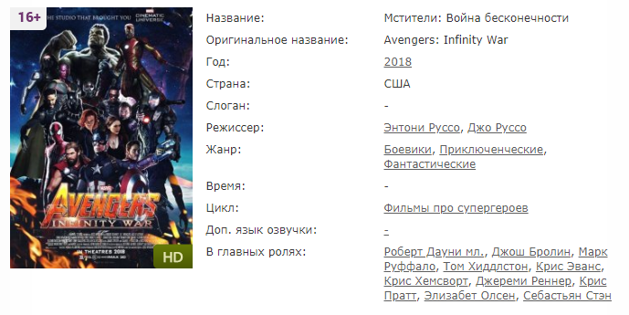 Десять лет назад, в 2008 году, студия Marvel выпустила блокбастер «Железный Человек» и открыла новую эпоху – эпоху грандиозной кинокомиксной вселенной, которая к настоящему времени включает два десятка полнометражных картин и множество смежных проектов. Как студия отмечает юбилей? С помощью своего самого эпического блокбастера, который сводит почти всех ее экранных супергероев с врагом запредельной, вселенской мощи.