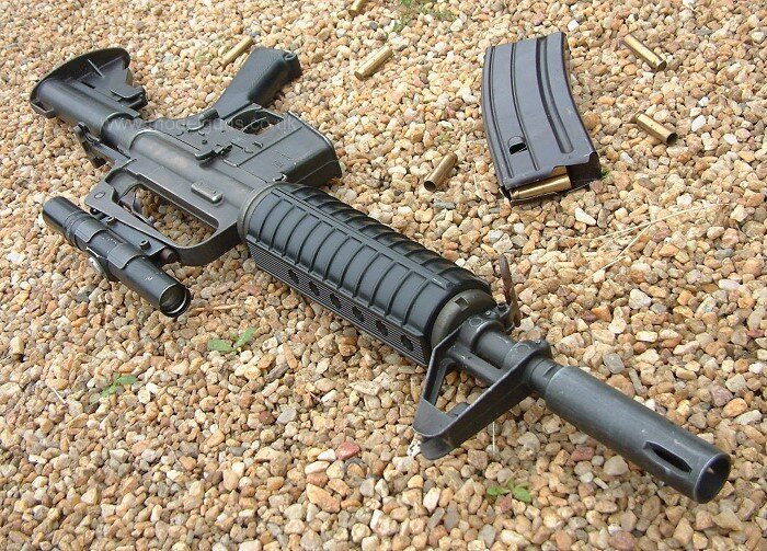 Компактный автомат (штурмовой карабин, или по внутренней классификации фирмы Кольт – пистолет-пулемет) Colt Commando был создан в 1965 году по требованию американских сил специального назначения, действовавших во Вьетнаме. Инженеры фирмы Кольт просто укоротили ствол винтовки AR-15 в 2 раза (с 508 до 254 мм), а также укоротили пластиковый приклад на 76 мм, сделав его раздвижным (защелка приклада была сделана на его затыльнике). В остальном новый автомат, названный CAR-15 Commando, не отличался от винтовки AR-15. Специально для ВВС США на основе CAR-15 Commando фирма Кольт разработала вариант CAR-15 Survival rifle, предназначенный для экипажей самолетов и вертолетов в качестве оружия выживания на вражеской территории. Это вариант имел металлический нескладной приклад, цевье круглого сечения и укороченную пистолетную рукоятку, и был выпущен в очень ограниченных количествах.