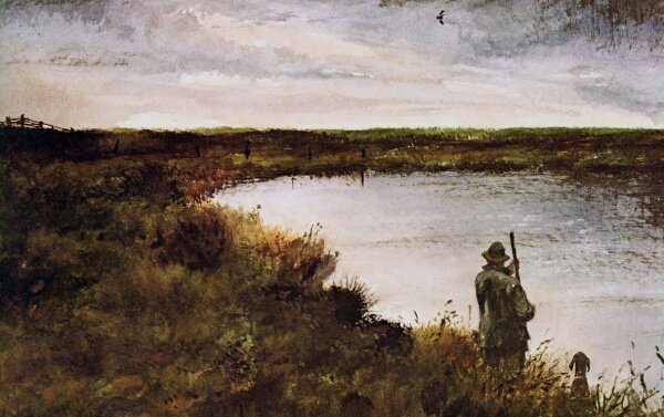 Неслышный дождь как манная крупа. Закат слепит, куда ни посмотрю. Диагональю по полю тропа протоптана от мая к октябрю. Моих следов неисчислимо тут, тем более следов собачьих лап. Мы каждый день выходим на маршрут, пока источник света не ослаб. Октябрьский снег медлительным катком тропу сомнёт, признав концом пути. Но с мая снова по полю гуськом мы будем в осень линию вести. МСТА Правый берег. Верная примета – облако, как дым. Жжём огонь с заката до рассвета под дождём седым. Остро пахнет перечная мята, мурава сыра. Две легавых, Астра и Агата, жмутся у костра. Пар от шерсти. Котелок с груздями рядом на пеньке. Дупеля уходят за дождями. Утка в тростнике. Хлещут струи, пузырятся воды. Дождь, туман, роса. Под плащами ждём даров природы, – смотрим в небеса. ЗВЕРИНАЯ ПАЛИТРА Дождями октябрь обуян. В букете увядшего лета медвежьей расцветки бурьян, жнивьё ястребиного цвета, мышиной окраски полынь, в овраге по краю затона – болота змеиная стынь, трава лягушачьего тона. Синичьей окраски листва