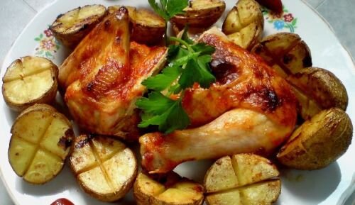 Сегодня я поделюсь с Вами рецептом вкусной запеченной курицы. Это праздничное блюдо рассчитано на большую компанию. Цыпленок и картофель гораздо вкуснее, когда они свежеприготовленные, а не разогретые. Ингредиенты Способ приготовления: Нарежьте чеснок, поместите его в цыпленка. Сверху натрите птицу перцем и солью, аккуратно смажьте майонезом, посыпьте специями, а после положите на застеленный антипригарной бумагой противень. Картофель очистите от кожуры, помойте, нарежьте на четвертинки. Выложите его на противень вокруг птицы, потом все вместе плотно накройте фольгой. Выпекайте при 200 °С в течение 1,5 часа. ПРИЯТНОГО АППЕТИТА! Если Вам понравился рецепт, ставьте лайк и подписывайтесь на мой канал в Яндекс.Дзен! А также в комментариях пишите, те продукты с которыми Вы бы хотели видеть рецепты.