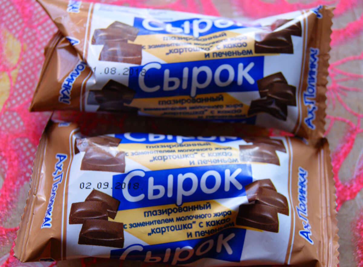 Позавчера отправилась я в Магнит. Бываю там редко, но так получилось,что идти никуда не хотелось, а Магнит находился прям под носом. Зашла, покидала в корзину нехитрые покупки в виде круп для собак, хлеба и всякой мелочи. Когда брала хлеб, увидела около молочного отдела пожилую пару (хлеб и молочка расположены в впритык), они набирали глазированные сырки по 6, 60. Брали много. Ну и я решила взять. Сырки я вообще не люблю. Да никто у нас в семье от них не фанатеет. Но все берут и мне надо! Тем более цена то какая. Всего 6 рублей. В общем взяла всего 4 штуки. Чему несказанно рада! А почему сейчас расскажу! Вот собственно сам сырок. Под милым названием - Ах, Полинка. На упаковке ясно написано, что продукт с заменителем молочного жира. Но кого это остановило! Цена и любопытство пересилили здравый смысл! А вдруг все таки вкусно! Сырок к сожалению оказался совсем не сырок. Начинка на творожную не похожа ни на грамм. Это нельзя назвать сырком. Вот абсолютно нельзя. На вкус ничего, не прит