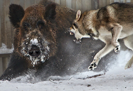 Охота с собаками была любимым и очень дорогим развлечением русского дворянства. Некоторые собаки могли охотиться на очень крупных лесных животных. Лайка. Лайка (хаски) - разносторонняя охотничья собака, родом из России. Они используются для охоты на лосей, кабанов, бобров, лесных птиц и уток. Узнав добычу, лайка преследует их лаем и не отпускает их до тех пор, пока охотник не подайдёт, чтобы убить добычу. Если добыча пытается бежать, лайка тихо ее преследует. Лайки известны своим обонянием, скоростью и упорством в погоне за добычей. Они могут даже преследовать медведей - они храбры, сердиты, крепко держатся и очень хитры. Лайки также учатся приносить маленькую мертвую добычу, такую как птицы и уток, их хозяину. Русская борзая. Считается, что борзые гончие были выведены в XVII веке из персидский борзой и русской лайки . Русские борзые имеют первостепенное значение для охоты они могут на самом деле захватить добычу, как лайка, но они намного быстрее. В отличие от пер