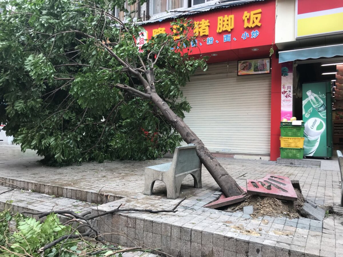 16 числа на юге Китая был объявлен красный уровень опасности в связи с надвигающимся тайфуном. Новостные ленты только и пестрили о тайфуне. Мы с мужем заранее купили продуктов, набрали воды на случай если ее отключат, зарядили всю свою технику, накачали фильмов и стали ждать. Примерно часов в 12 тайфун добрался до материка. Чаты разрывались от страшных видео где деревья вырывает с корнями, как от ветра шатались высотки и как падали строительные леса и фотографии с выбитыми стеклами. Мы стали ждать когда тайфун дойдет до Гуандожу и готовиться к худшему. По прогнозам тайфун к часам трем дня должен был добраться до Гуанджоу. Мы следили за тайфуном на специальном сайте где показывали его местоположение онлайн и когда он подобрался очень близко к городу мы начали смотреть в окно и наблюдать за погодой. Просидев на против окна минут 40 мы не увидели не чего не обычного, просто дождь и порывы ветра. Начинало уже темнеть и по карте было видно что тайфун уже далеко от города. Часо