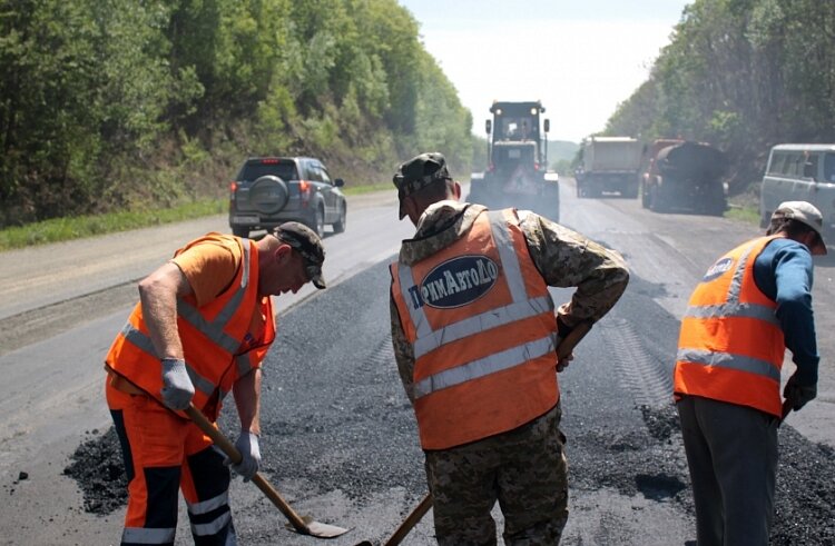 Примавтодор ремонтирует муниципальные дороги в Арсеньеве, Октябрьском и Спасском районах