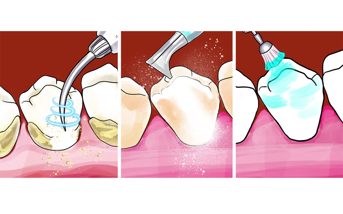 Профессиональная гигиена – это стоматологическая процедура включающая в себя три этапа – ультразвуковую чистку, чистку при помощи пескоструйного аппарата и полиров