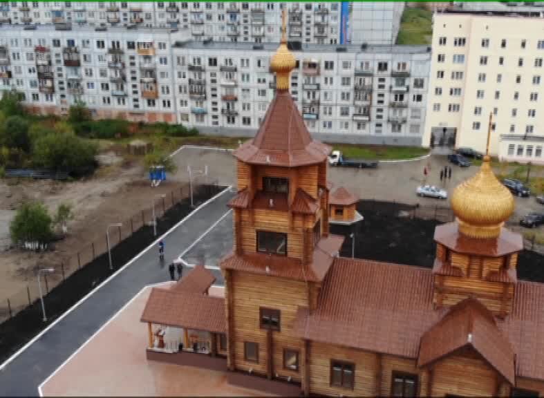 Храм в честь апостола Андрея Первозванного в Гаджиево впервые распахнул свои двери для прихожан. Средства на его возведение собирали «с миру по нитке», деревянные срубы строили уральские мастера, и несмотря на сложности успели завершить работы к 61-му дню рождения гарнизона подводников. «Стройка десятилетия» - так называют храмовый комплекс жители Гаджиево. Его возведение началось 14 лет назад, но по разным причинам планы приходилось откладывать. Теперь на радость всем прихожанам, на самом въезде в гарнизон можно не только увидеть самобытную русскую архитектуру, но и побывать на церковной службе. Игумен Аввакум, настоятель Свято-Андреевского храма в ЗАТО Гаджиево: «Все происходит в своё время. Когда люди объединились, когда пришла помощь шефов из Екатеринбурга, которая оказала решающее действие в этом финансовом вопросе, тогда и все стало возможным». Решение о строительстве именно деревянного храма принято неспроста. В отличие от камня и бетона, карельская сосна, из которой изготовлен