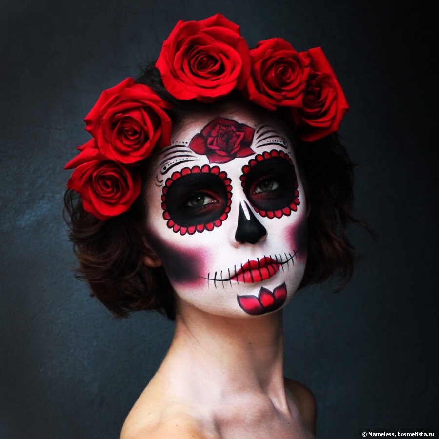 Все готовы к Хэллоуину? Если вы еще не придумали свой наряд/грим, то один из самых простых и эффектных образов - это вариация черепа на мотив Sugar Skull - мексиканской калаверы, символа праздника Дня мертвых. Ее сегодня и разберем в подробном уроке.