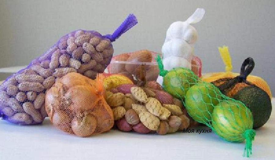 Сетки, в которых продаются фрукты и овощи, можно использовать повторно. Моем их от грязи, распускаем на нитки, либо используем целиком.