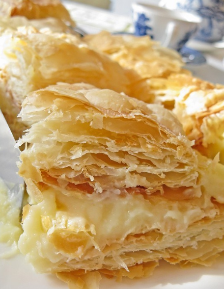 От большинства известных и более-менее классических версий «Наполеона» этот рецепт очень выгодно отличается тем, что не требует многократного и утомительного раскатывания теста со сливочным маслом или выпекания двадцати отдельных коржей. Тесто и так прекрасно слоится. Кроме того — в качестве дополнительного бонуса, — отлично подходит для пирожков с мясом или сыром. Ингредиенты Маргарин 300 г Яблочный уксус 1 столовая ложка Яйцо куриное 2 штуки Соль щепотка Вода 200 мл Сливочное масло 200 г Сахар 1 стакан Цедра апельсина 1 чайная ложка Молоко 1 стакан Пшеничная мука 3 стакана 1. Охлажденный маргарин порубить с мукой в мелкую крошку острым ножом или специальным блендером для теста. Можно также потереть маргарин на терке и потом смешать руками с мукой — главное, действовать быстро, чтобы маргарин не начал таять. 2. В смеси муки и маргарина сделать небольшую ямку. В стакане смешать одно яйцо с уксусом и солью. Долить стакан доверху водой. Постепенно влить получившуюся смесь