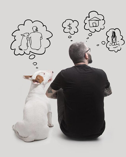 Бразильский иллюстратор Рафаэль Мантессо после развода с женой остался с домом, в котором ничего нет – лишь голые стены, да с бультерьером по кличке Джимми Чу. Но и этого ему хватило, чтобы создать серию необычных иллюстраций. Встречайте – голые стены, бультерьер и немного фантазии! Чудо-юдо рыба-Бультерьер! Не хватает сказочной принцессы. Действительно, а чем такса отличается от сосиски? Собакам тоже стоит чистить зубы. В отпуск! На пляж! Осень, осень наступила, листья осыпаются. Кто знает, по какому поводу порода «бультерьер» получила свое название?