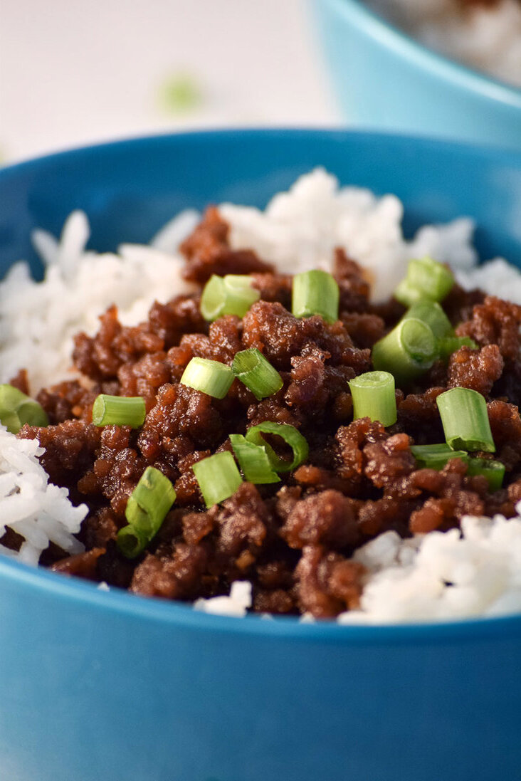 Это один из моих новых любимых рецептов быстрых и легких обедов. Приготовление займет всего несколько минут! В этом рецепте мне нравится то, что в нем используются простые, основные ингредиенты, всегда доступные под рукой, а на выходе получается блюдо как из ресторана! И так начнем – быстрая, легкая и вкусная говядина с рисом по-корейски. Ингредиенты 1. Треть стакана коричневого (тростникового сахара) 2. Четверть стакана соевого соуса 3. Одна столовая ложка кунжутного масла 4. Четверть чайной ложки молотого черного перца 5. Восьмая часть чайной ложки перемолотого имбиря 6. Столовая ложка растительного масла (я предпочитаю оливковое, низкой кислотности) 7. 3 мелконарезанных зубчика чеснока или одна чайная ложка молотого сушенного чеснока 8. 450г говяжьего фарша 9. 2-3 стебля зеленого лука 10. Отваренный рис (я использую круглозерный, т.к. он получается менее рассыпчатым и более влажным, чем длиннозерный) Приготовление 1. В небольшой кастрюле миксером перемешайте сахар, соевый соус, кунж