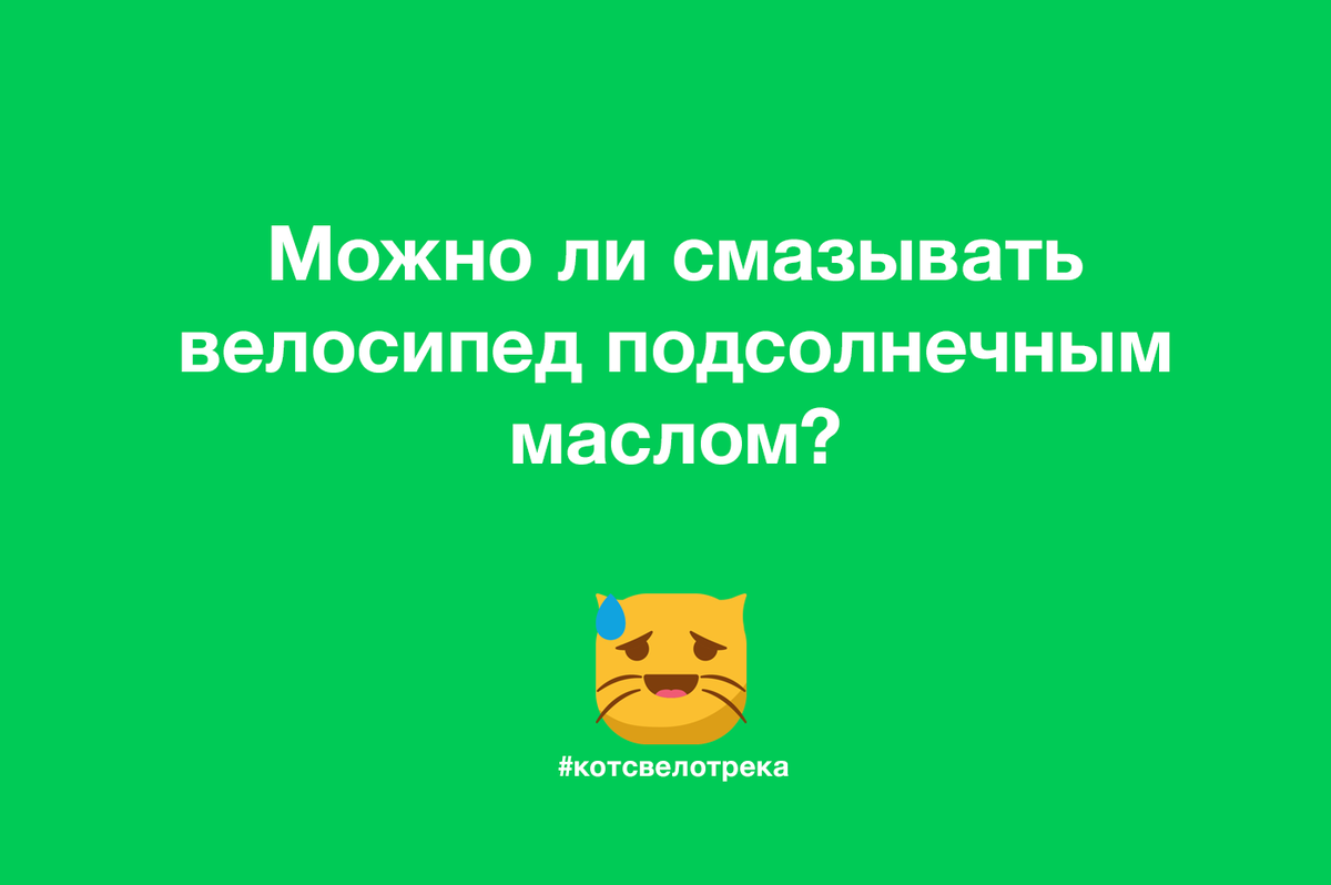 Можно, если вы едите бутерброды с моторным маслом. Далеко не любая маслянистая жидкость подходит для смазывания узлов велосипеда. Подсолнечное масло, как велосипедная смазка, плоха тем, что создает все условия для образования коррозии. А еще на такое масло очень быстро налипают частички грязи и пыли — поверьте моему хвосту.