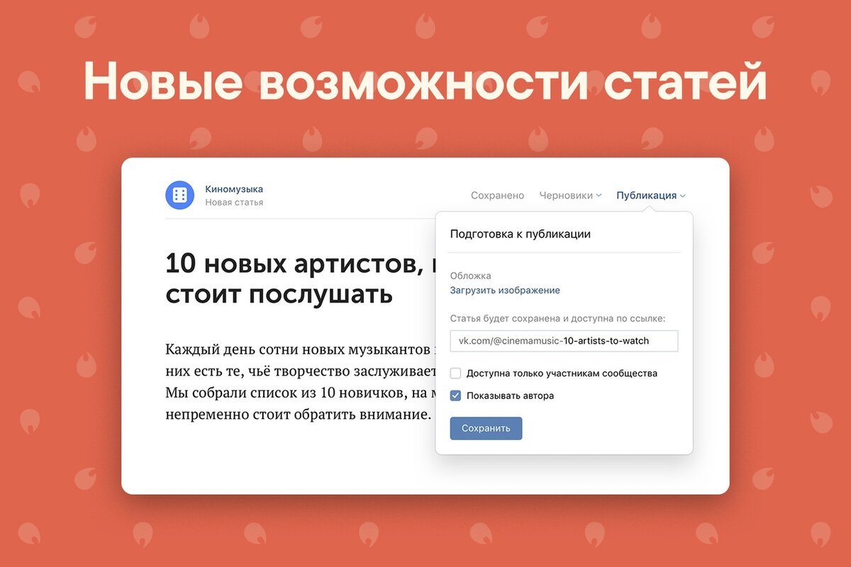 Недавно ВКонтакте неплохо прокачали функционал для своих статей. Что же нового? Читайте ниже. Разработчики наконец добавили поиск по содержимому статьи. А в глобальном поиске и на стене сообществ теперь можно найти не записи со статьями, но и получить результаты с учетом содержимого этих статей. Также можно искать статьи в поиске новостей. Найти можно будет все статьи, опубликованные с сегодняшнего дня. Кроме этого, теперь статьи от имени группы в или паблика можно опубликовать с подписью автора. Для этого достаточно поставить галочку у пункта "Показывать автора" при публикации статьи. Пока эти новые фичи тестируются на избранных сообществах. Все новые функции станут доступны для всех в ближайшее время. Понравилось? Ставьте лайки, делитесь с друзьями и подписывайтесь на канал! :)