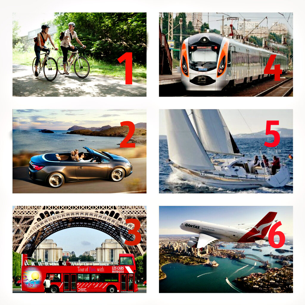 Внимательно посмотрите на картинку , а затем выберете средство передвижения,которое вы находите более привлекательным лично для себя . На чём бы вы хотели прокатиться? Начнём… Средство передвижение, которое вы выбрали, рассказывает о ваших шансах в достижении целей и чертах характера, способствующих или же наоборот, создающих препятствия к их достижению.