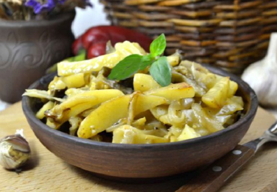 Хитрая она потому, что сразу и не поймешь с чем она приготовлена. Вернее, поймешь, но наверняка ошибешься. А все дело в том, что в процессе приготовления к картошке добавляются баклажаны, которые каким-то дивным образом в этом блюде больше напоминают грибы. Попробуйте приготовить на ужин для своих домочадцев такую картошечку, только не говорите с чем она, думаю, все будут спрашивать какие грибы вы использовали и где их взяли) Итак, нам понадобится: около килограмма картошки 3 средних баклажана 3 зубчика чеснока большая луковица небольшой пучок укропа немного подсолнечного масла соль, молотый перец - по вкусу. Кстати, о вкусной и здоровой еде еще можно прочитать здесь: Домашняя тушенка в банке - и быстрый ужин вам обеспечен Быстрая выпечка к чаю - "Конфетки" с сосисками Пышные украинские пампушки - настоящая смакота! Копченая рыба в рукаве для запекания - нереально вкусно! Сытный пирог с мясом и капустой - быстро, просто и вкусно Вкуснейший завтрак - круасаны с сыром и ветчиной Д
