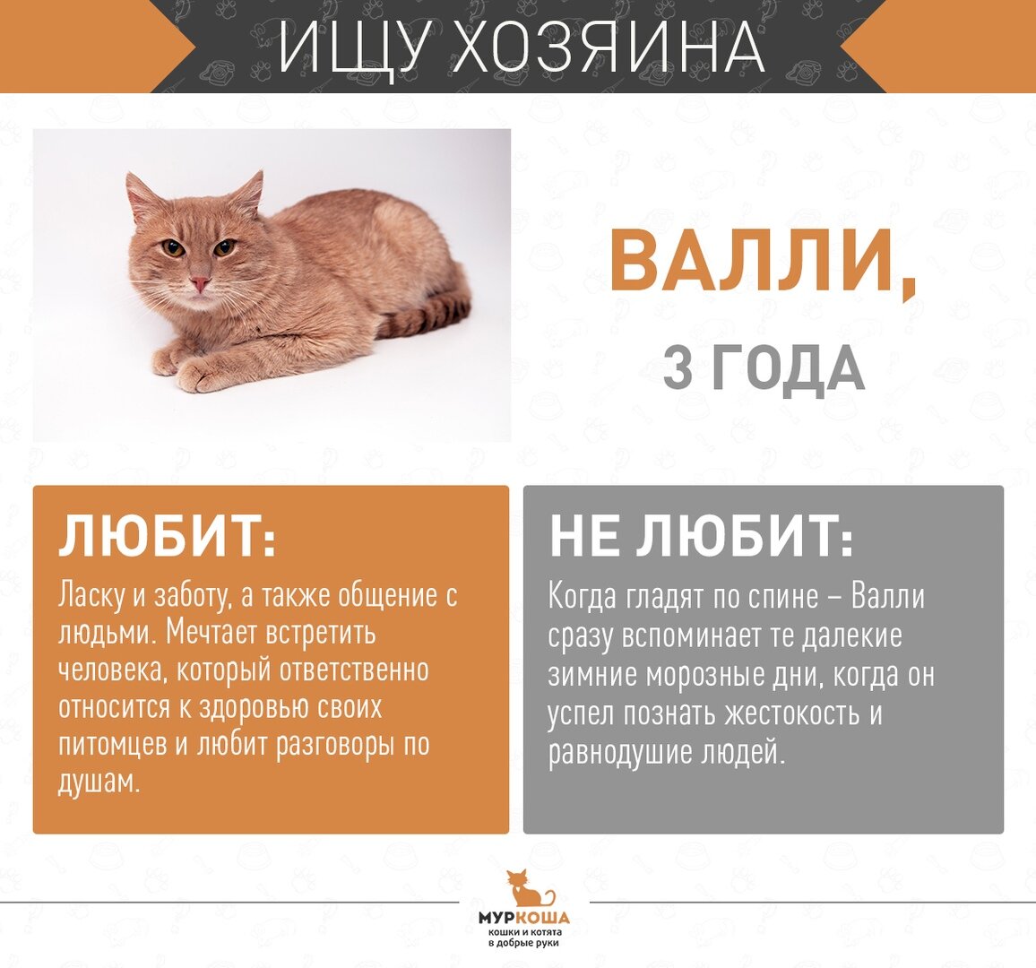 Так бывает, что некоторые котики долго не могут найти того единственного и любимого и с грустью в глазах провожают уехавших счастливчиков. Давайте дадим шанс "засидевшемуся" котику? Может он ждёт именно Вас? Знакомьтесь, Валли! >>Хочется помочь приюту? Поставь 👍👍👍<<
