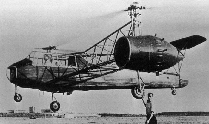 Несмотря на неудачу, Сикорский к весне 1910г построил второй геликоптер. Он имел два трехлопастных винта и был снабжен более мощным двигателем в 25 л.с. Аппарат весил 180 кг. Но конструктор не довел своих работ до конца над геликоптером, начав работать в области создания аэропланов. В начале 1909 г. студент Московского высшего технического училища и деятельный участник воздухоплавательного кружка, впоследствии академик, заслуженный деятель науки и техники Б.Н. Юрьев разработал проект оригинального геликоптера. В средней части его корпуса должен был размещаться двигатель "Гном" мощностью 70 л.с. для вращения двух двухлопастных винтов. Верхний винт диаметром 9м и нижний - 3м. Кроме того, аппарат имел рулевой винт с поворотными лопастями. Для обеспечения управляемости и устойчивости геликоптера в пролете был предусмотрен так называемый автомат-перекос, позволявший изменять углы установки лопастей винта и благодаря этому наклонять аппарат в нужном направлении. Геликоптер был снабжен шасси для разбега и парашютом на случай остановки двигателя. Общий вес аппарата составлял 315 кг. Лишь вначале 1912 г Юрьевым был построен одновинтовой геликоптер. Диаметр двухлопастного винта составлял 8м. Реактивный момент несущего винта конструктор предложил компенсировать при помощи рулевого винта, установленного в конце хвостовой фермы. Он приводился во вращение основным двигателем с помощью специального передаточного механизма. Эта схема вошла в историю современного вертолетостроения как классическая схема одновинтовых вертолетов с хвостовым (рулевым) винтом. Из-за малой мощности двигателя и необходимости максимально облегчить вес аппарата Юрьеву пришлось отказаться от установки автомата-перекоса и поворотных лопастей винта. Тем не менее, аппарат весил 202,5 кг. Весной 1912 г этот вертолет демонстрировался на 2-й Международной воздухоплавательной выставке в Москве и ему была присуждена золотая медаль. Впервые реальные предпосылки для перехода от до этого экспериментального моделирования вертолетов к постройке машин целевого назначения появились в конце 30-х годов ХХ века. Развивались подобные технологии и в Советском Союзе, но на преграде к внедрению идей постройки вертолетов встала Великая Отечественная война, которая внесла коррективы не только в общественную жизнь государства, но и в развитие науки и, в частности, вертолетостроения. Но все же, несмотря на крайне тяжелое положение в стране, профессор Б.Н.Юрьев смог организовать первое специализированное предприятие, основное предназначение которого было моделирование и постройка совершенно нового вида летательных аппаратов – вертолетов.17 декабря 1939 года на основании приказа Народного комиссариата авиационной промышленности СССР было создано самостоятельное ОКБ-3, а уже 4 марта 1939 года перед Б.Н.Юрьевым и И.П.Братухиным была поставлена задача построить первый двухместный вертолет с двумя двигателями МВ-6, дальностью полета не менее 200 километров и скоростью 150 км/ч. В предписании указывалась необходимость постройки двух подобных воздушных машин, а также указывались сроки предоставления вертолетов для проведения испытаний. Первая машина должна была быть поставлена не позднее 1 мая 1941 года, а вторая - спустя два месяца, 1 июля 1941 года.