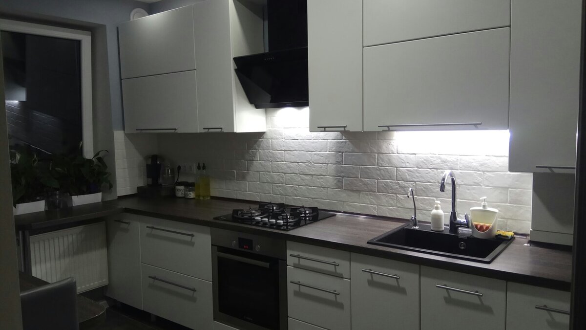 Казалось бы в новостройках должны все делать для людей! Ан, нет! Иначе денежки потекут мимо кассы. (( Ведь за то, чтобы перенести котел или установить счетчик в нужном месте, придется выложить круглую сумму. Так было и в случае Юлии Чуриковой из Калининграда. Несмотря на то, что кухня находится в новостройке, пришлось изобретать "велосипед". И неплохой "велосипед" получился, скажу я вам! Переносить трубы, вентиляцию, котел и счетчик не стали. Решили задачку по-своему, оригинально. Посмотрим фото, что получилось. БОльшая часть кухни угол Как спрятали котел? Сделали шкаф с открытым верхом и откидную часть шкафчика для доступа к шлангам. Куда спрятали газовый счетчик? Счетчик занимает добрую часть нижнего ящика, т.к. он огромный! Почему холодильник странным образом делит гарнитур? В угол к двери его было невозможно поставить, т.к. иначе он бы перекрывал вход. Пришлось делить гарнитур на части. Да, это выглядит странно. Но это был единственно возможный вариант его размещения. А так полу