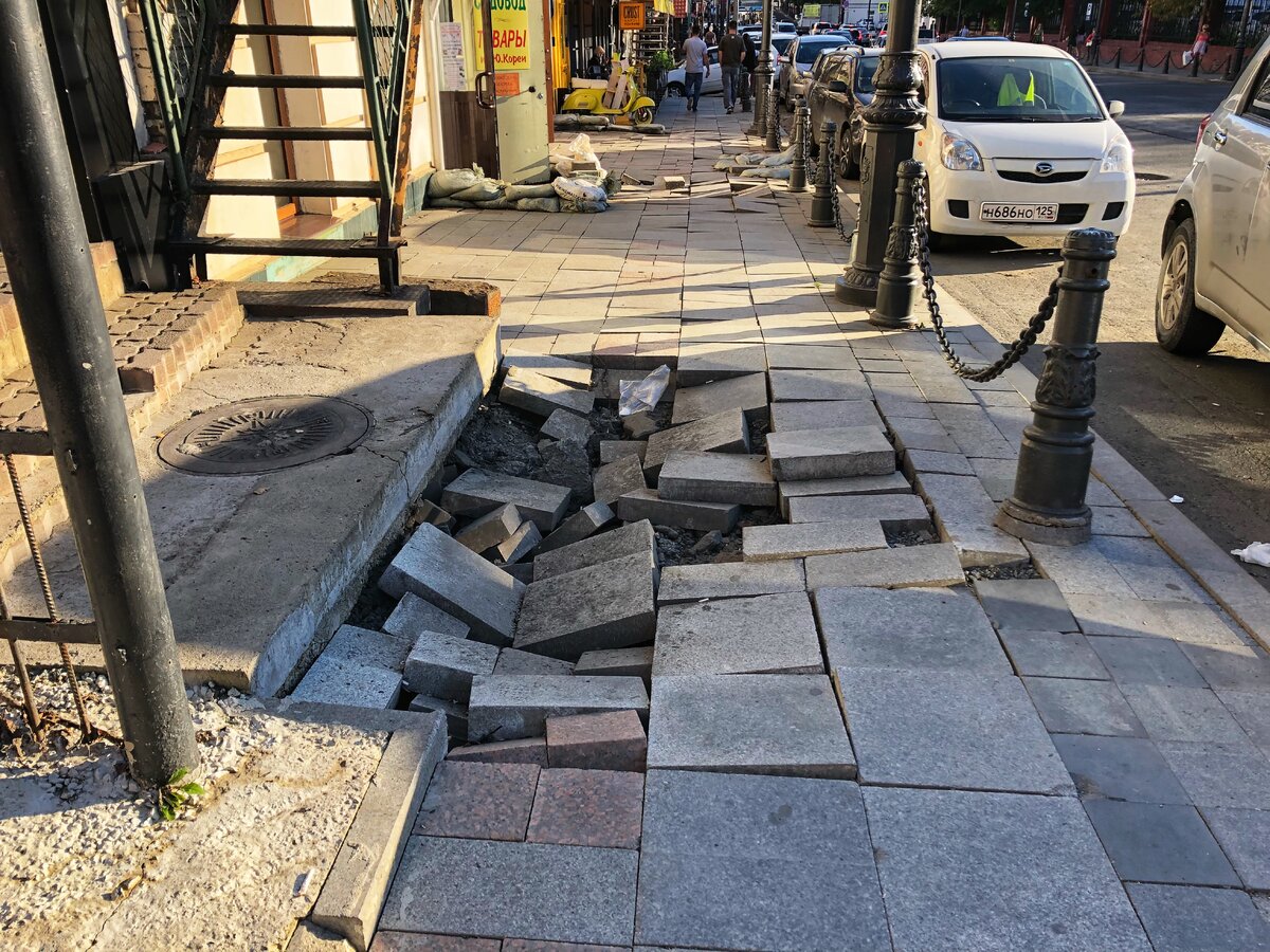 Когда чиновники во Владивостоке говорят о качественных работах и безопасных дорогах: мне хочется поржать над этими лицемерными сволочами. Во Владивостоке тротуарная плитка после каждого ливня стремится отправиться в преисподнюю. Перекладка плитки была ровно полгода назад, после первого дождя всё вернулось на свои места. Хочется задать множество вопросов на отремонтированном участке по улице Комарова. Тут провели капитальный ремонт дорожного полотна. Вроде сделали всё по технологии: слой щебня и три слоя асфальтового покрытия. Но, первый тайфун показал что всё сделано через одно место. Знаменитая дыра в центре Владивостока по улице Фонтанной. Дыра появляется после каждого ливня, дорожники закидывают её строительным мусором и снова закатывают в асфальт. И так по кругу из года в год. Уже кто-то из жителей пошутил, что тут скоро будет ветка метро. И это всё в центре города. За такое властям должно быть стыдно! И где так прокуратура, которая должна проверить все контракты на благоустр