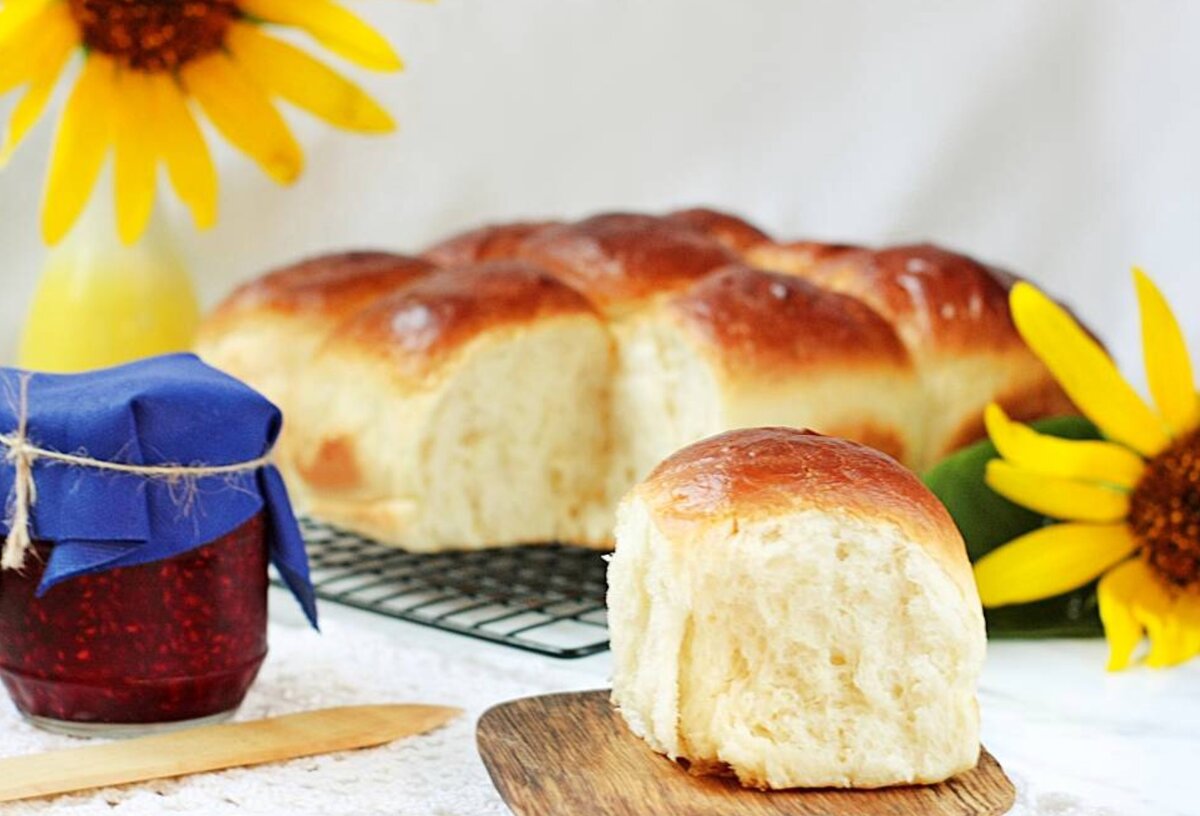 Булочки по этому рецепту получаются очень пышными и мягкими. Всё благодаря японскому методу выпечки, который подразумевает использование мучной заварки, называемой Танжон. Булочки, приготовленные таким способом, сохраняют свою свежесть и пышность несколько дней! Нам понадобится: Для заварки Танжон Вода - 3 ст л Молоко 3,2% - 3 ст л Мука пшеничная - 2 ст л Для закваски Молоко тёплое - 1/2 стакана Дрожжи свежие - 38 г Сахар - 2 ч л Для теста Мука пшеничная - 2,5 стакана Сахар - 1/4 стакана Соль - 3/4 ч л Яйцо - 1 шт Масло сливочное растопленное - 1/4 стакана Дополнительно Маленькое яйцо - 1 шт (для смазки) Начинаем готовить: Для начала приготовьте Танжон. Поместите молоко, воду и муку в небольшую кастрюлю. Поставьте её на маленький огонь и начните перемешивать венчиком. Через 2-3 минуты смесь начнёт сгущаться. Как только это произойдёт, снимите кастрюлю с огня, перемешайте ещё раз и дайте смеси остыть. Приготовьте закваску. В тёплое молоко добавьте сахар и раскрошите дрожжи. Перемешайте