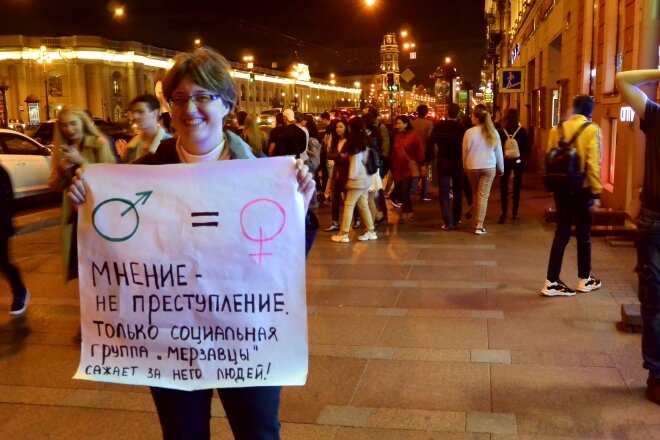 В Петербурге прошел пикет в поддержку обвиненной в экстремизме омской феминистки