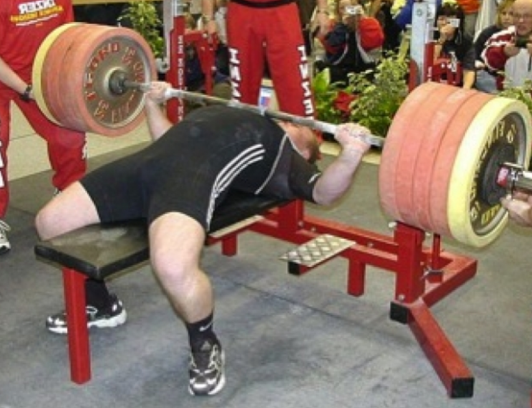 Наверно, каждому любителю железного спорта приходилось отвечать на вопрос, сколько он жмет лежа. Жим штанги лежа является одним из самых популярных упражнений и по нему часто судят о том, насколько атлет силен. Также по этому движению проводятся соревнования и присваиваются разрядные нормативы. Существует как безэкипировочный жим лежа, так и жим в специальных жимовых майках. Атлеты, которые выступают в экипировке, как правило, показывают более высокий результат, так как майка дает неплохую прибавку. Но и жим без экипировки сейчас набирает обороты и спортсмены там показывают хорошие результаты. Некоторые спортсмены показали в этом упражнении настолько высокий результат, что порой сложно поверить, что такое возможно. Далее мы познакомим вас с атлетами, рекорды которых перевалили за 300, и даже за 400 килограмм. Отметим как результаты в экипировке, так и без неё. Райан Кеннели В многослойной экипировке ему покорились фантастические 487,6 килограмм! На сегодняшний день его результат в экип