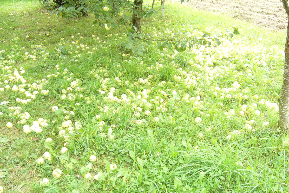 По саду невозможно ходить, все усыпано яблоками, деревья не выдерживают такого количества и сбрасывают лишнее. Все свободное время на даче посвящаем тому, чтобы собирать упавшие яблоки и отвозить их на свалку.