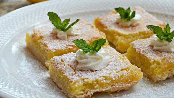Это печенье больше похоже на пирожное. Неожиданный интенсивный сладкий лимонный вкус и заварной крем, идеально контрастирующий с хрустящим сладким маслянистым песочным печеньем. 1 ч. 40 мин., 16 порций Ингредиенты: Для песочной корочки: 1 стакан муки 1/2 стакана сливочного масла комнатной температуры 1/4 стакана сахарной пудры 1/4 ч. л. ванильного экстракта 1/4 ч. л. соли Для лимонного слоя: 2 больших яйца 1 большой яичный желток 1 стакан белого сахара 2 ст. л. муки 1/4 стакана свежевыжатого лимонного сока 1 ст. л. лимонной цедры 1 ч. л. сахарной пудры, или по вкусу Приготовление: Разогрейте духовку до 175 градусов C. Слегка смажьте 20х20 см форму для выпечки. Положите 1 стакан муки и сливочное масло в миску и перемешайте деревянной ложкой до однородности. Вмешайте 1/4 стакана сахарной пудры, экстракт ванили и соль; перемешайте, чтобы смесь выглядела как слегка рассыпчатое тесто для печенья. Смочите пальцы небольшим количеством воды и примите тесто ко дну приготовленной формы для вып