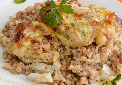 Гречка с куриными бедрами в духовке. Экспресс-рецепт.