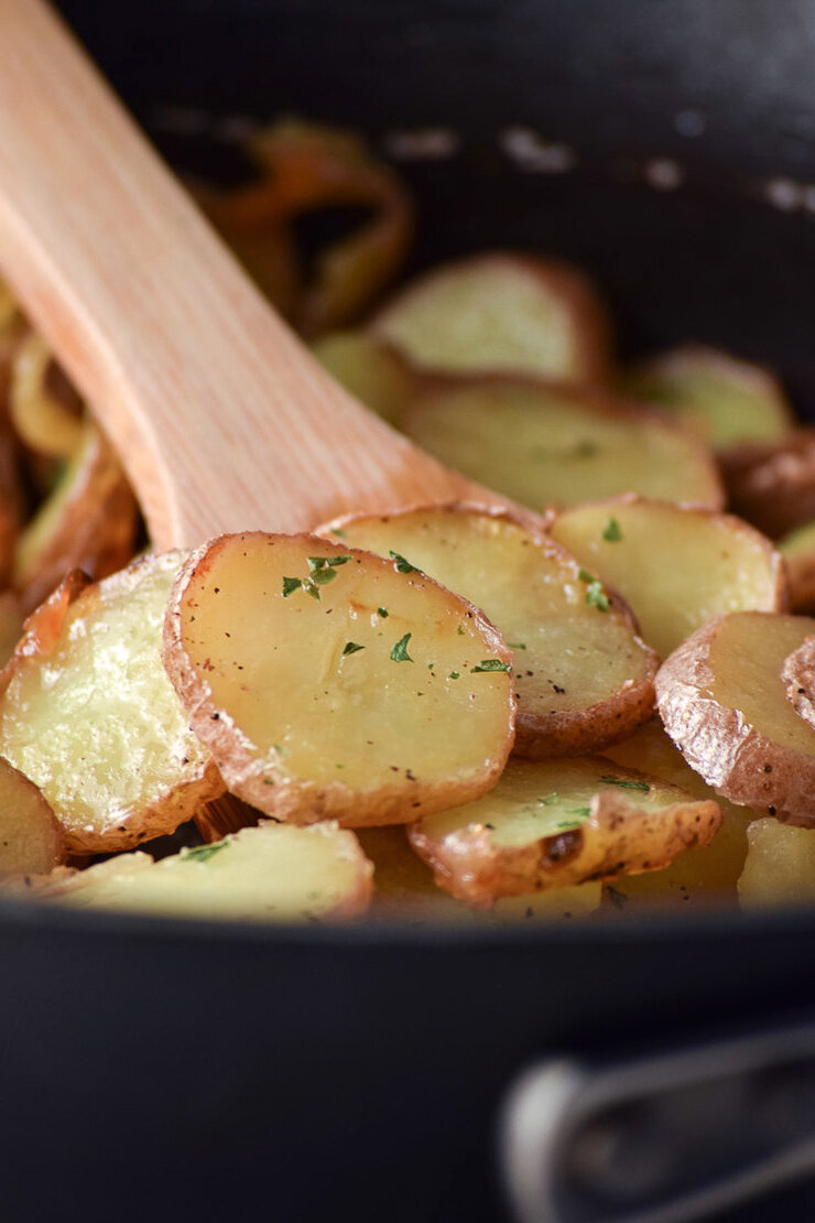 3. 6-8 средних красных картофелин, хорошо отмытых и нарезанных кружками (если используете большие картофелины, можно нарезать полукружками)