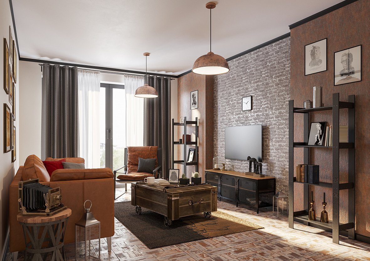 Стиль лофт представляет собой сочетание нескольких направлений, на первый взгляд совершенно не согласующихся между собой. Но при соблюдении нескольких правил, вы без труда сможете воплотить подобный дизайн в своей квартире. Поскольку при оформлении гостиной в стиле лофт необходимо максимально приблизиться к эффекту производственного помещения, то при выборе напольного покрытия лучше отдать предпочтение бетонному или деревянному полу. Отличной альтернативой может стать ламинат, имитирующий фактурное дерево. При отделке стен также необходимо придерживаться урбанистического стиля. Современное многообразие обоев позволяет с легкостью добиться эффекта кирпичной кладки или затертого металла, что является не только прагматичным, но и относительно бюджетным вариантом. Наиболее гармонично в такой гостиной будут смотреться деревянные оконные рамы. Шторы лучше всего выбрать однотонные: идеально подойдут белый, серый, бежевый цвета, а также серебристые оттенки. Удачной альтернативой шторам могут
